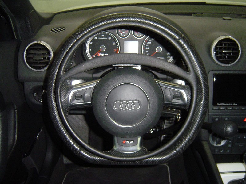 Nous avons installé sur cette Audi A3, le cercle accélérateur et la manette frein sur-mesure à droite.