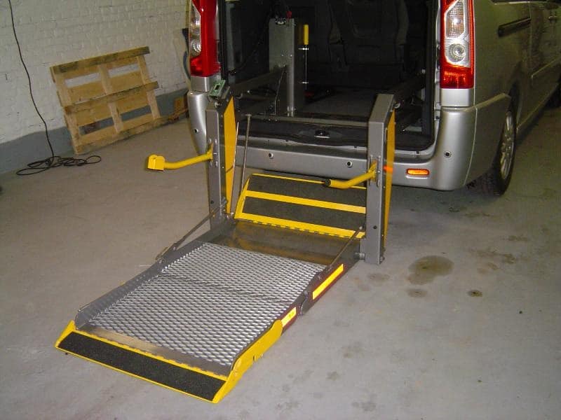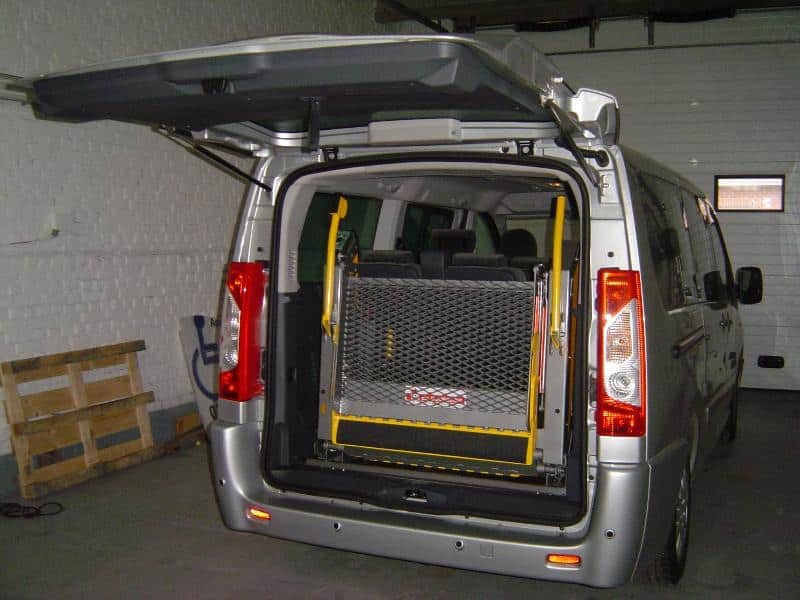 Nous avons installé un hayon élévateur modèle H2B dans un Expert Tepee pour transférer un fauteuil électrique à l’arrière du véhicule (attention : sans la personne à mobilité réduite dessus, car ce véhicule est trop bas !). Ce hayon est entièrement automatique et peut supporter jusqu’à 350 kg, facilitant ainsi le transport du fauteuil en toute sécurité.