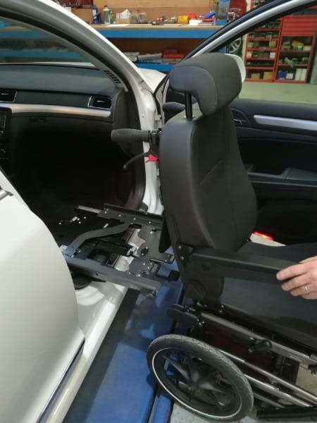 Ce système permet le transfert de la personne dans son véhicule sans quitter le fauteuil roulant. En effet, le Carony 16 comprend l’embase d’adaptation dans le véhicule, le siège et l’embase du fauteuil roulant. C’est ainsi que le siège du carony 16 est soit dans le véhicule, soit sur l’embase du fauteuil roulant.