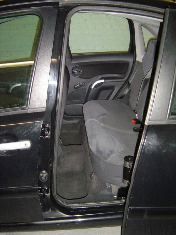 La porte escamotable permet à une personne à mobilité réduite, assise à l’avant, de transférer son fauteuil roulant à l’arrière du véhicule sans quitter le siège conducteur. Ce système est souvent associé à un robot chargeur ou à un treuil installé à l’arrière, qui vient prendre en charge le fauteuil pour faciliter son rangement.